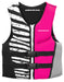 The Wicked is one life jacket thats fun to wear! Kids and adults alike adore the Kwik-Dry Neolite material, which traps in warmth when the wind picks up. With Wicked, you get the best of both worlds?the durable zippered closure in the front is combined with double quick-release buckles, making this life jacket secure and easy to remove in an instant. The Wicked Neolite life jacket is U.S. Coast Guard approved, meaning it meets requirements to keep you safe across boating, floating, tubing, and riding. In the infant style, the extra flotation element at the head of the jacket offers maximum safety for your youngest water adventurers. Plus, the cut offers more freedom of movement for all-day fun. The Wicked Neolite life preserver pattern is guaranteed to turn heads with multi-dimensional shades of vibrant pink, black, and white. Get this life jacket in the full range of sizes, from infant to adult XL. Disclaimer: For your convenience, please use the size chart and know that the Neolite life jackets may feel snug or run a little small. If you are unsure or in between sizes, we would recommend choosing the larger size. ? Type III: U.S. Coast Guard approved. Less bulky design for use when quick rescue is likely. Offers larger range of motion. (Infant is Type II) Closed-Sided: Offers a tighter and more secure fit to keep your life jacket in place Buckles: Side release buckles open and close quickly to ensure safety and security on the water Zippers: Easily and quickly fasten and remove your vest to stay safe in the water 2
